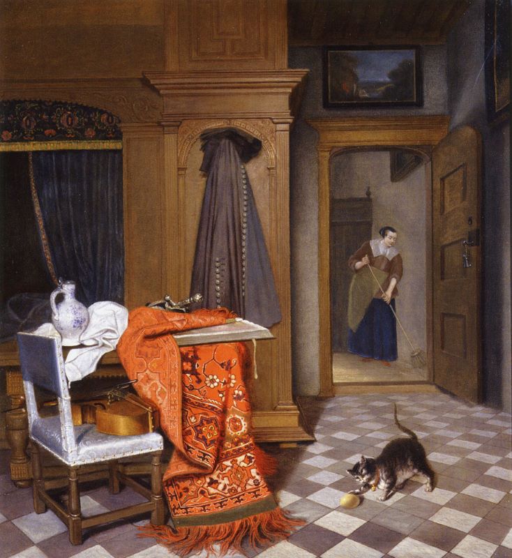 Consider, too, the transformation of Gérard The Cat’s Lunch to Vallotton’s Squatted woman offering milk to a cat (1919) a century later. Was Gérard a reference for Vallotton? The color palette and the position of the women squatting while giving drink to their cats suggests this possibility. Yet Vallatton’s woman is naked, like the cat, and crouching down on the cat’s level. There is a greater affinity between human and nonhuman animal than in earlier paintings, and the simplified color blocking is a foreshadowing of modern art. As I write and think more about it, I find this to be an important painting.