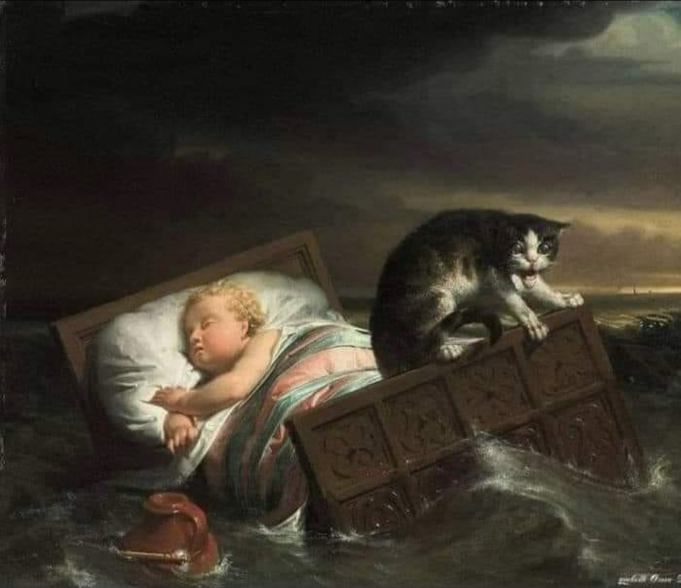 The 1800s, especially, was a period of anecdotal genre painting, depicting human interactions with other animals in everyday life as well as extraordinary events (a fire, a flood, the Underground Railroad). The strong emotions engendered by these scenes are echoed in the depictions of grief and mourning in our gallery for the Green Pet-Burial Society. At the end of the century, with John Collier’s, Circe, we see the intimacy with reclining women, naked or in nightgowns, with animals. Picasso’s, Lying female nude with cat (1964) echoes Bodarevsky’s Her Favourite (1905).